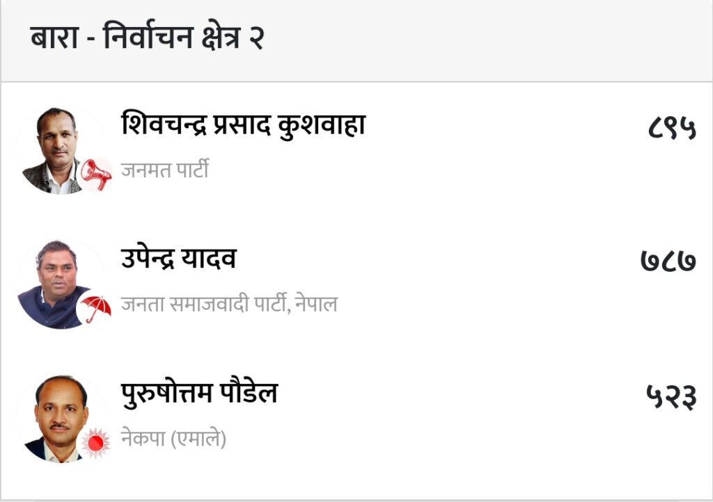 बारा २ मा उपेन्द्रलाई ६०० मतको अग्रता