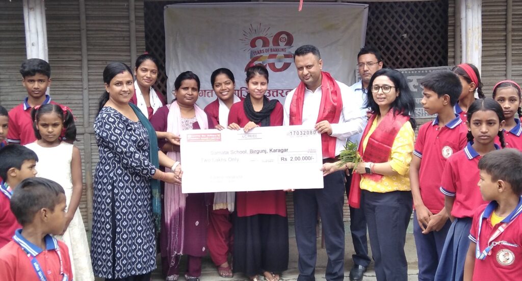 एभेरेष्ट बैंकद्वारा समता स्कूललाई २ लाख सहयोग