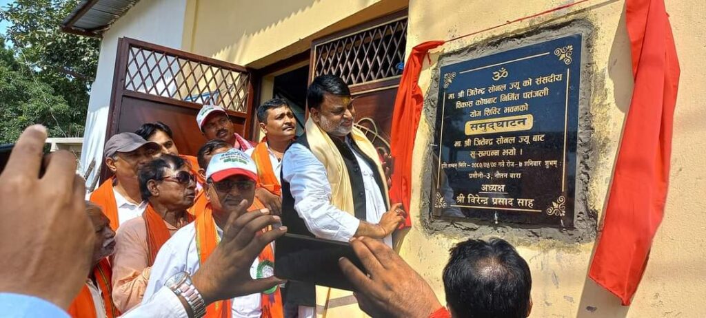 प्रसौनी,बारा बाराको प्रसौनीमा निर्मित योग भवनको पूर्व मन्त्री जितेन्द्र सोनलले उद्घाटन गरेका छन् । प्रसौनी गाउँपालिका वडा नम्बर ३ मा निर्मित पतञ्जलि योग भवनको शनिवार एक कार्यक्रमका वीच मधेशप्रदेशका पूर्व भौतिक पूर्वाधार विकास मन्त्री सोनलले उद्घाटन गरेका हुन् । बारा निर्वाचन क्षेत्र नम्बर ४ (ख) बाट निर्वाचित प्रदेशसभा सदस्य सोनलको संसदीय विकास कोषको ३० लाख […]