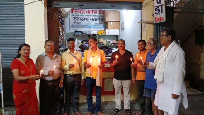 वीरगंज, ७ भदौ । वीरगंज कपडा बैंकले सातौं स्थापना दिवसको अवसरमा शनिवार साँझ दिप प्रज्वलन गरेको छ । वीरगंज–८ स्थित कपडा बैंकको कार्यालय स्थापना गरेको छैठौ वर्ष पूरा गरी सातौं वर्षमा प्रवेश गरेको अवसरमा दिप प्रज्वलन गरि बधाई शुभकामना साटासाट गरेको हो । वीरगंज कपडा बैंकका अध्यक्ष लालबाबु सिंहको अध्यक्षता एवं बैंकका वरिष्ठ सल्लाहकार अधिवक्ता पन्नलाल गुप्ताको प्रमुख आतिथ्यमा सम्पन्न कार्यक्रममा समाजसेवी डा. शिव कुमार, बैंकका सल्लाहकार श्रवण बहादुर रायमाझी, सदस्य निला कुमारी राम, संजय मण्डल, निरन्जन मिश्र, विशाल ठाकुर, धनिलाल प्रसाद, दिलिप चौरसिया लगायतको सहभागीता रहेको सचिव कन्हैया पटेलले बताउनु भयो । प्रमुख अतिथि अधिवक्ता गुप्ताले तपाईसँग धेरै छ भने हामीलाइ दिनुस र तपाई लाई जरूरी छ भने हामीसंग निशुल्क लिएर जानुसको मुलमन्त्रलाइ आत्मसात गरि बैंकले कार्यालय स्थापना गरि बिगत ६ वर्ष देखि निरन्तर दिनदुखी असहायलाई नया, पुरानो कपडाको माध्यमले सहयोग गरेको बताउनुभयो । आगलागी, बाढी जस्तो आपत बिपत परेको खण्डमा लत्ताकपडाको साथै सक्दो खाद्यान्न एवं नगद सहयोग गर्दै पनि उहांले बताउनुभयो । मानवको सर्बाेत्तम धर्म हो भन्दै सम्पूर्णलाइ मानवता बलियो बनाउन आग्रह गर्दै दाताहरू, शुभेच्छुकहरूप्रती आभार ब्यक्त गर्नुभएको थियो । समाजसेवी डा. शिव कुमारले हामी सबैको साझा प्रयासले नै दिनदुखी असहायको समुचित सेवा सहयोग हुने भएकोले दिन दुखी असहाय बिपन्नको बैंकले गरेको सेवा सहयोगको खुलेर प्रसंशा गर्दै बैंकको सुकार्यमा सबैले साथ दिनुपर्नेमा जोड दिदै बैंकको उत्तरोत्तर प्रगतिको शुभकामना व्यक्त गर्नुभयो । सो अवसरमा अध्यक्ष सिंहले दिनदुखी असहायको सेवा सहयोगमा वीरगंज कपडा बैंकको अभियानमा नयाँ पुराना कपडा र आर्थिक रूपले हातेमालो गरि मानवता बलियो बनाउने सम्पुर्ण मानवताप्रेमी सहयोगीप्रति आभार प्रकट गर्नुभयो । सचिव पटेल र सदस्य रामले बैंक स्थापनाको शुरूवातको समयलाइ सम्झिदै वीरगंज कपडा बैंकको अभियानमा साथ सहयोग गर्ने सम्पुर्णलाई आभार ब्यक्त गर्नुभएको थियो ।
