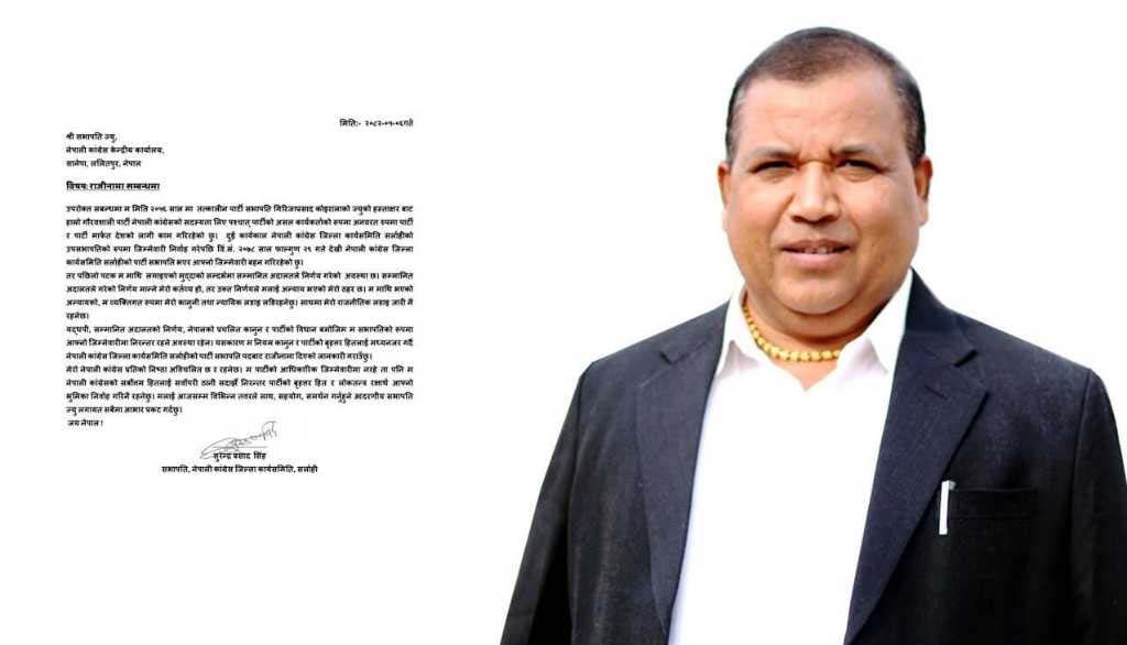 भ्रष्टाचारी ठहर भएका सर्लाहीका कांग्रेस सभापति सिंहले दिए राजीनामा