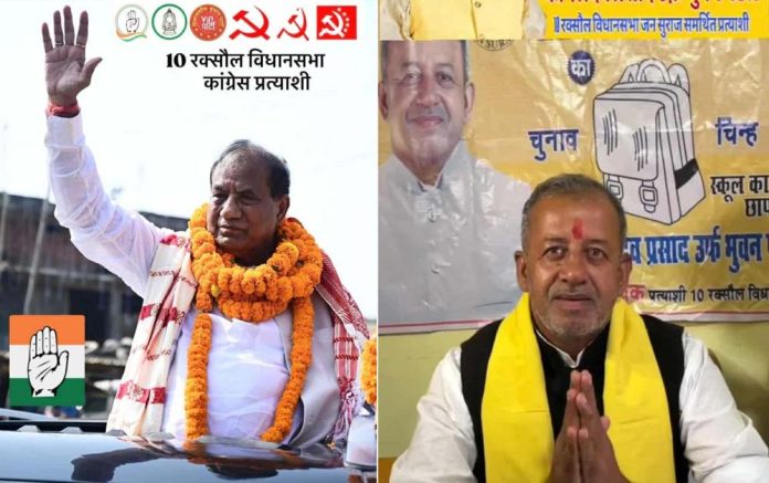 वीरगंजको भारतीय छिमेकी शहर रक्सौलमा यसपालिको विधानसभा चुनावमा त्रिकोणात्मक चुनावी प्रतिस्पर्धा रहेको बुझिएको छ । एनडिएबाट भाजपा विधायक प्रमोदकुमार सिन्हाले नै टिकट पाएका छन् भने महागठबन्धनबाट जदयूका पुराना नेता रक्सौलबाट पूर्वमा रहेको नरकटिया विधानसभा क्षेत्रका पूर्वविधायक श्यामबिहारी प्रसाद चुनावी प्रतिस्पर्धामा छन् । बिहारमै पहिलोपटक चुनाव लडिरहेको प्रशान्त किशोर (पिके)को पार्टीबाट भेलाही घर भएका जदयूका पुराना नेता कपिलदेव प्रसाद अर्थात् भुवन पटेलले टिकट पाएका छन् । पिके नेतृत्वको जनसुराज पार्टीका उम्मेदवार भुवन पटेलको उम्मेदवारीले रक्सौलमा राजनीतिक तरङ्ग पैदा गरेको छ । नयाँ पार्टी शिक्षा र रोजगारलाई चुनावी एजेन्डा बनाएर चुनावमा होमिएको कारण पिकेको उक्त पार्टीप्रति युवाहरूको आकर्षण बढ्दो देखिएको रक्सौलका मतदाताहरू बताउँछन् ।