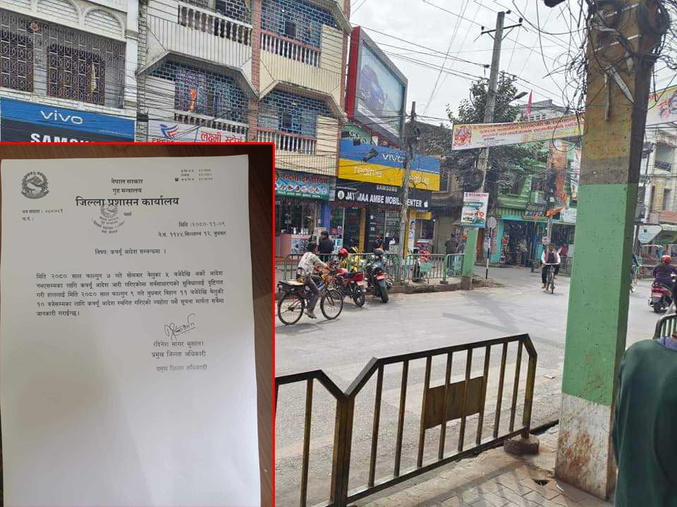 वीरगंजको कफ्र्यु ११ बजेदेखि राति १० बजेसम्मको लागि स्थगित
