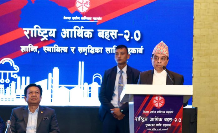 महासङ्घले आज यहाँ आयोजना गरेको ‘राष्ट्रिय बृहत् आर्थिक बहस २.०’ कार्यक्रममा मुलुकको अर्थतन्त्रमा निजी क्षेत्रको योगदान ८१ प्रतिशत रहेको उल्लेख गर्दै अध्यक्ष ढकालले राज्यले निजी क्षेत्रको योगदान आत्मसात् गर्दै आमसर्वसाधारणलाई पनि बुझाउने गरी मन्त्रिपरिषद्बाट सार्वजनिक महत्वको प्रस्ताव पारित गर्नु आवश्यक रहेको बताउनुभयो ।