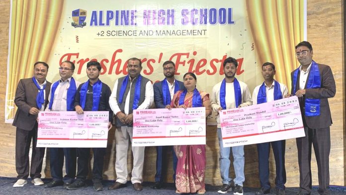 अल्पाइन हाइ स्कूल प्लस टु साइन्स म्यानेजमेन्टबाट अध्ययन गरी एमबिबिएस अध्ययनका लागि पूर्ण छात्रवृत्ति प्राप्त गरेका सुनील कुमार यादव, शुभमकुमार सुडी र आइओई पुल्चोक इन्जिनियरिङ छात्रवृत्ति प्राप्त गरेका प्रशान्त मण्डललाई अल्पाइनका अध्यक्ष विनोद उपाध्याय, निर्देशक विशाल उपाध्याय र प्रधानाध्यापक विक्रम उपाध्यायले संयुक्तरूपमा रू एक–एक लाखको चेक हस्तान्तरण गरेका थिए ।