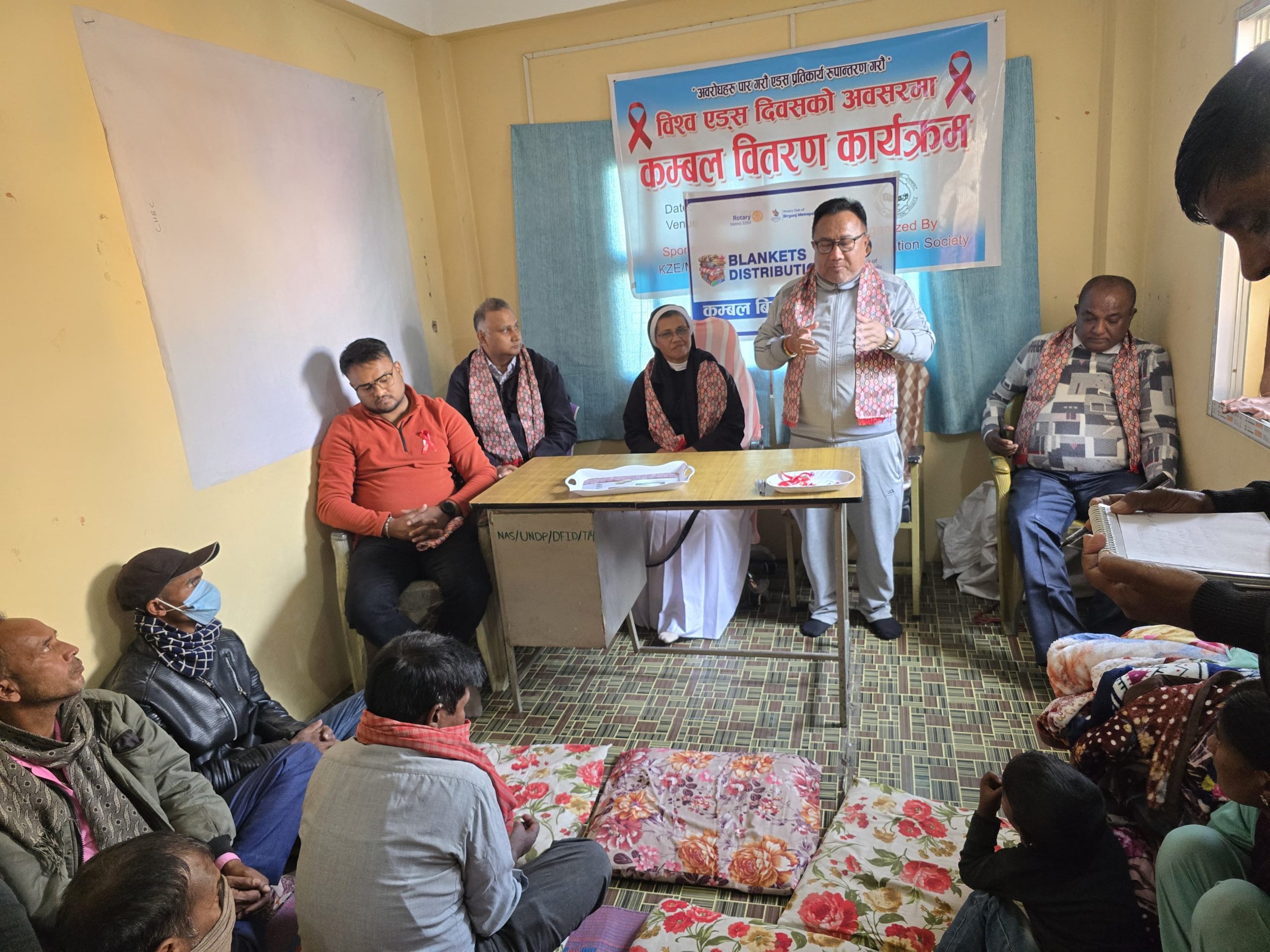 विश्व एड्स दिवसका अवसरमा नेपाल आराधना समाज र रोटरी क्लब अफ बिरगंज मेट्रोपोलिसको संयुक्त आयोजनामा एचआईभी प्रभावित तथा आर्थिक रूपमा कमजोर रहेकालाई कम्बल वितरण गरेको छ ।