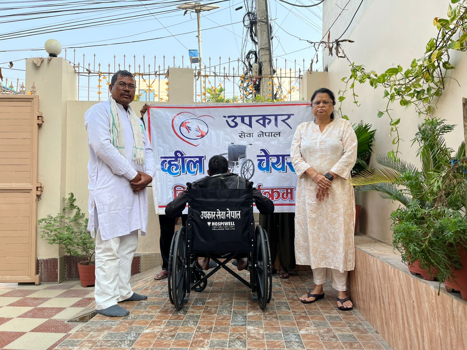 पर्साका बिजय महतोलाई उपकार सेवा नेपालको ह्विलचेयर सहयोग