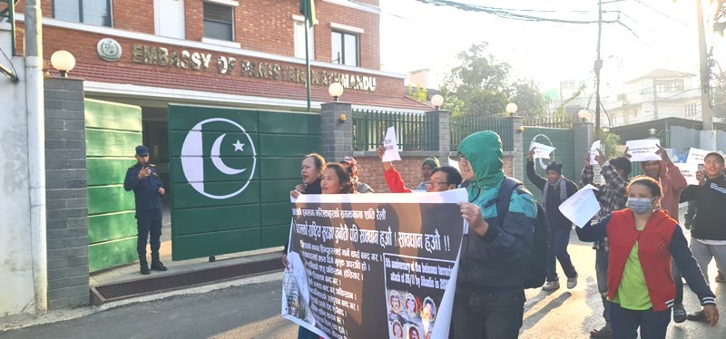 पाकिस्तानी दूतावास अगाडि प्रदर्शन
