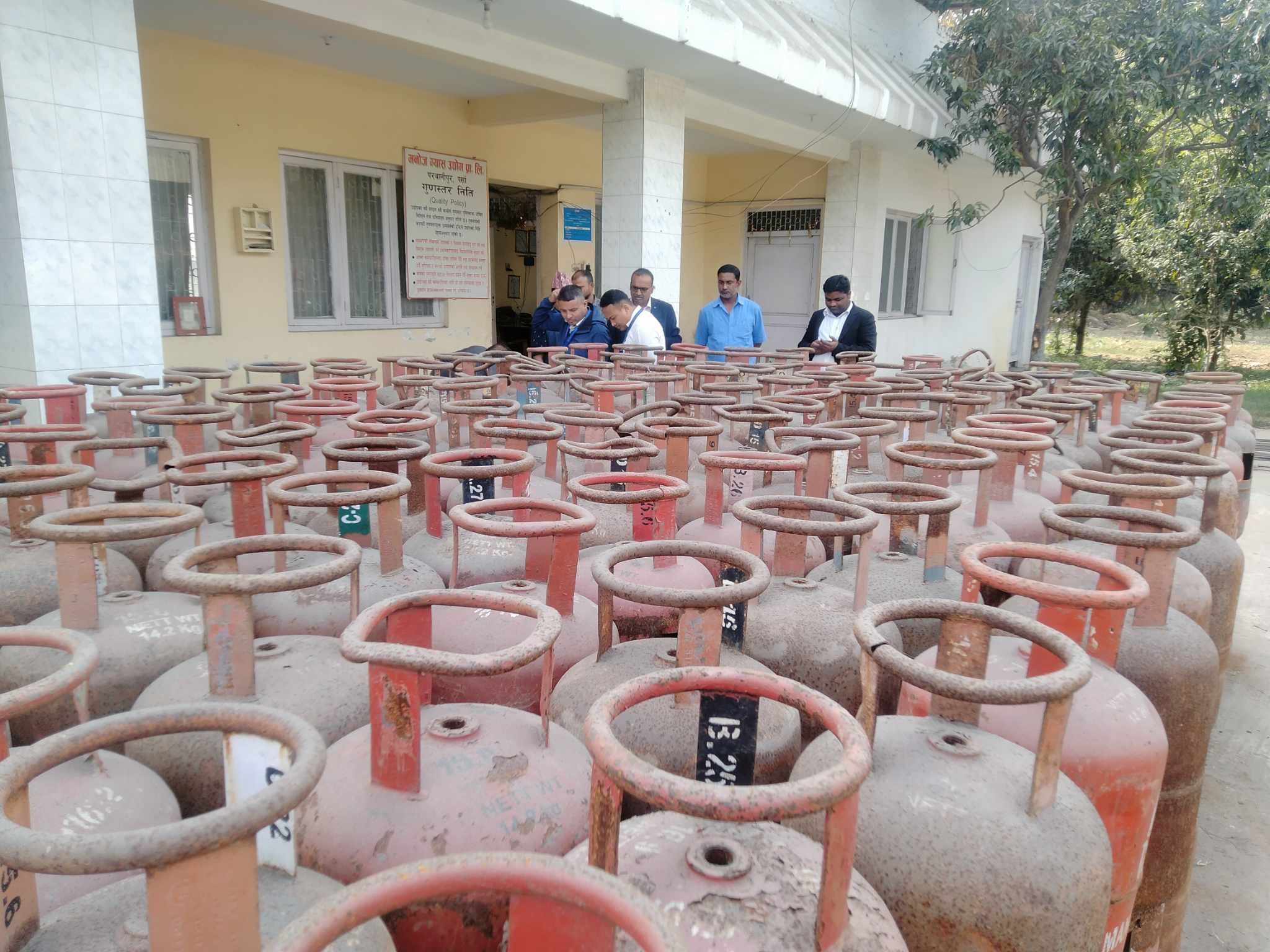 मनोज ग्यासद्वारा म्याद गुज्रिएका हजार ग्यास सिलिन्डर नष्ट गर्दै