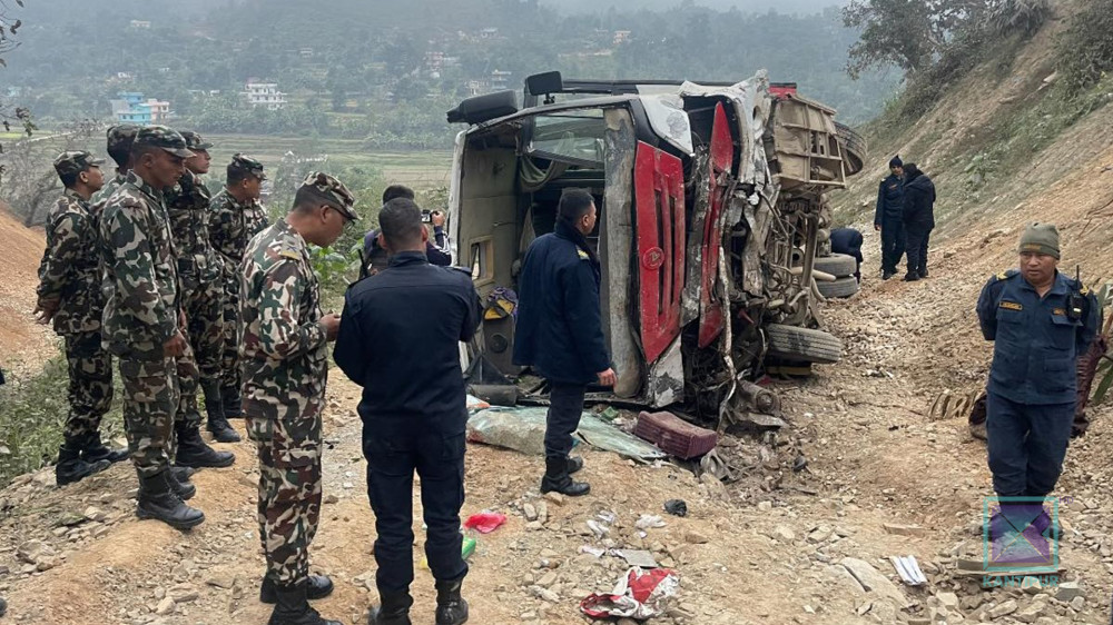 बस दुर्घटना : २ जनाको मृत्यु, ३४ जना घाइते
