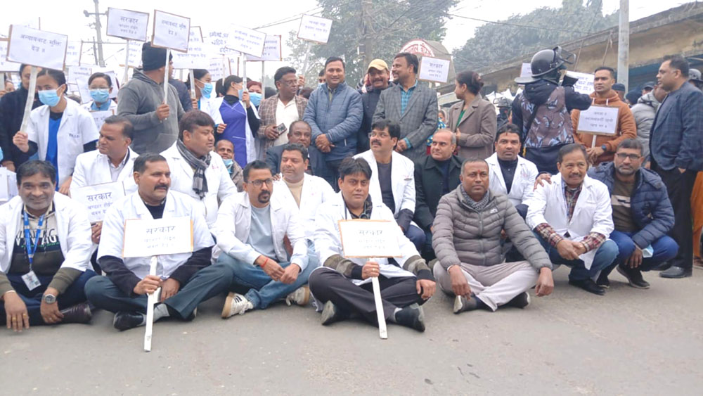 नारायणी अस्पतालका जीर्ण भएको भन्दै चिकित्सकद्वारा सडकमा धर्ना