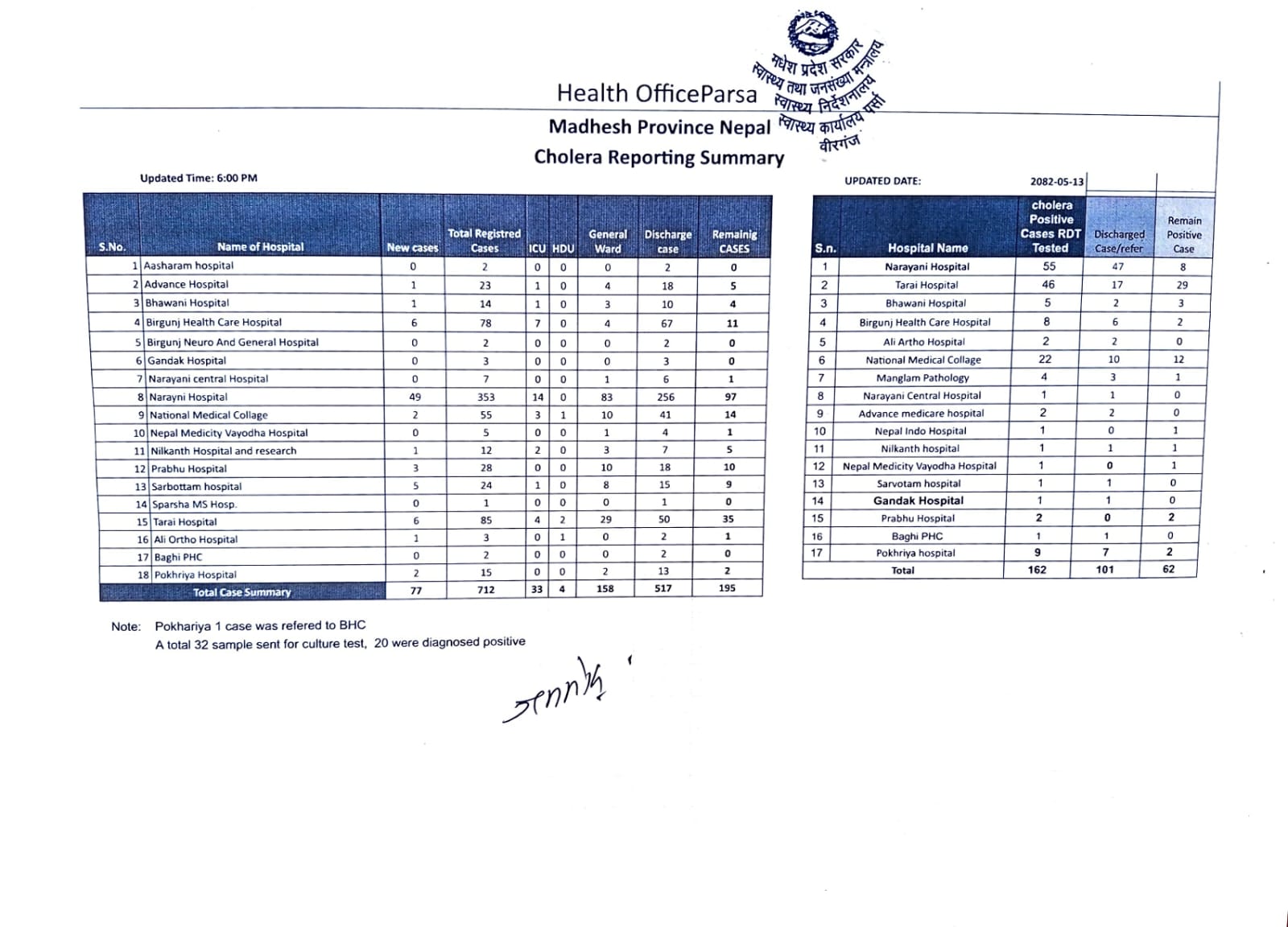 ७७ जना नयाँ हैजा बिरामी भेटिए