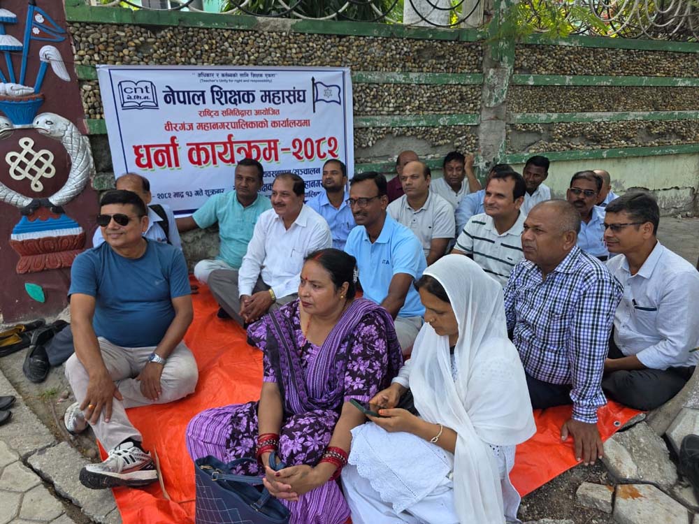 शिक्षा विधेयक पारितको लागि वीरगंजमा शिक्षकहरुको धर्ना