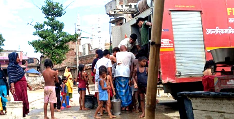 सखुवाप्रसौनी गापाद्वारा पानी ओसारेर वीरगंज महानगरमा वितरण गर्दै