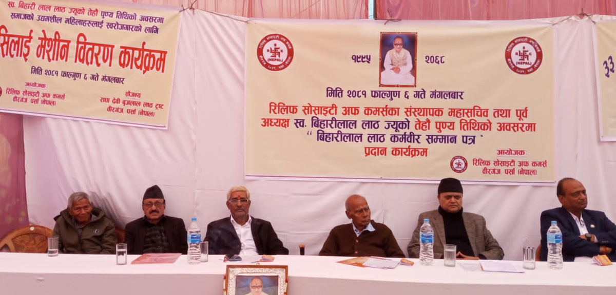 रिलिफ सोसाइटीद्वारा सम्मान तथा सिलाई मेसिन वितरण