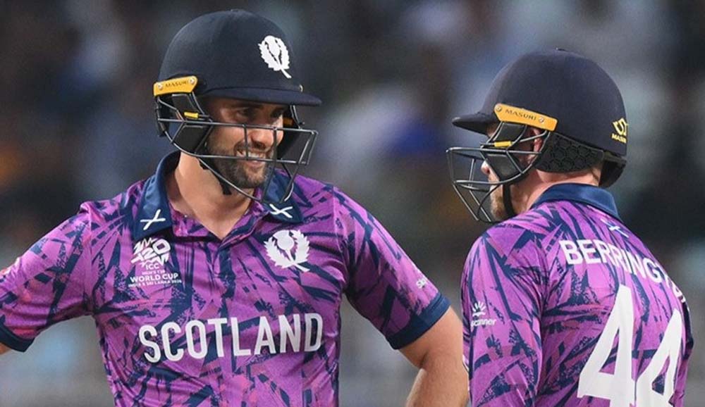 भारतको कोलकतास्थित इडेन गार्डेनमा जारी खेलमा ‘टस’ हारेर पहिला ‘ब्याटिङ’को निम्तो पाएको स्कटल्यान्डले निर्धारित २० ओभरमा चार विकेट गुमाउँदै २०८ रनको योगफल बनाएको हो । स्कटल्यान्डका लागि जर्ज मुल्सेले सर्वाधिक ८४ रनको योगदान दिए । उनले ५४ बलमा १३ चौका र दुई छक्का प्रहार गर्दै ८४ रन जोडेका हुन् ।