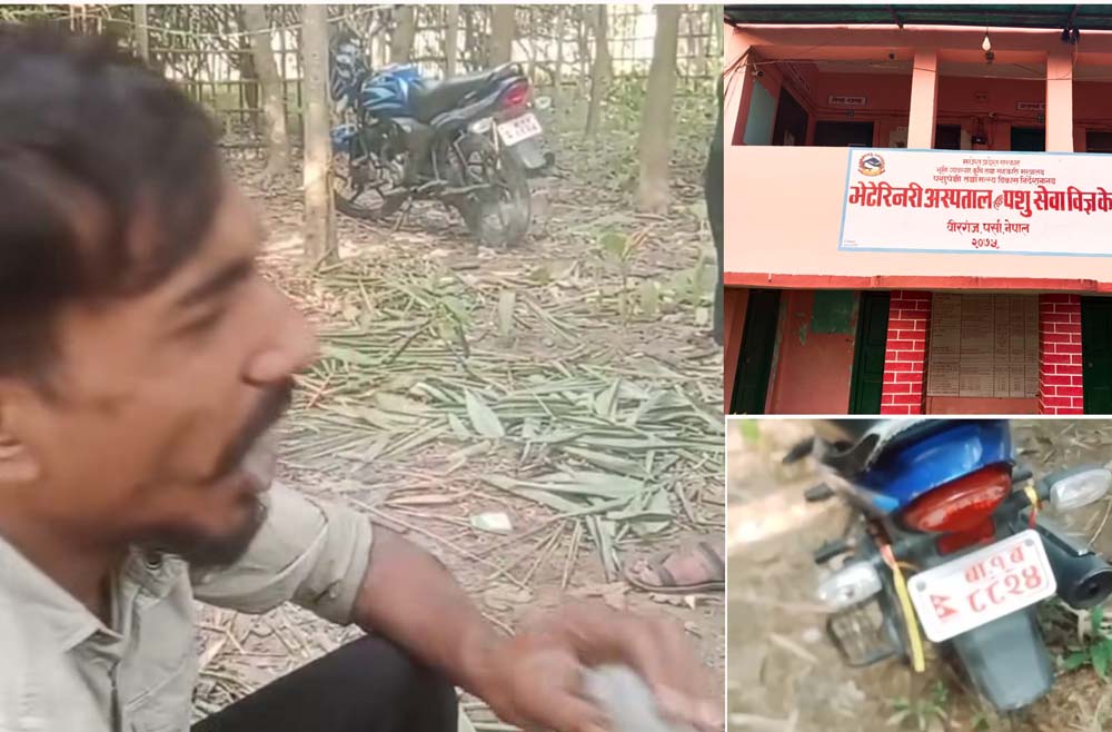 राधेश्याम पटेल वीरगंज, १८ कार्तिक । यही कार्तिक पहिलो साता पर्सामा एउटा भिडियो भाइरल भयो । सो भिडियोमा भेटेरिनरी अस्पताल तथा पशु सेवा विज्ञ केन्द्र वीरगंजका कार्यालय सहयोगी राकेश कुमार साहले हुक्का ताने जस्तै लागु औषध गाँजा खाएको भनेर देखिन्छ । वीरगंज र अन्य ठाउँका विभिन्न सञ्चार माध्यममा सरकारी कार्यालय एक कर्मचारीले सरकारी मोटरसाइकल लिएर […]